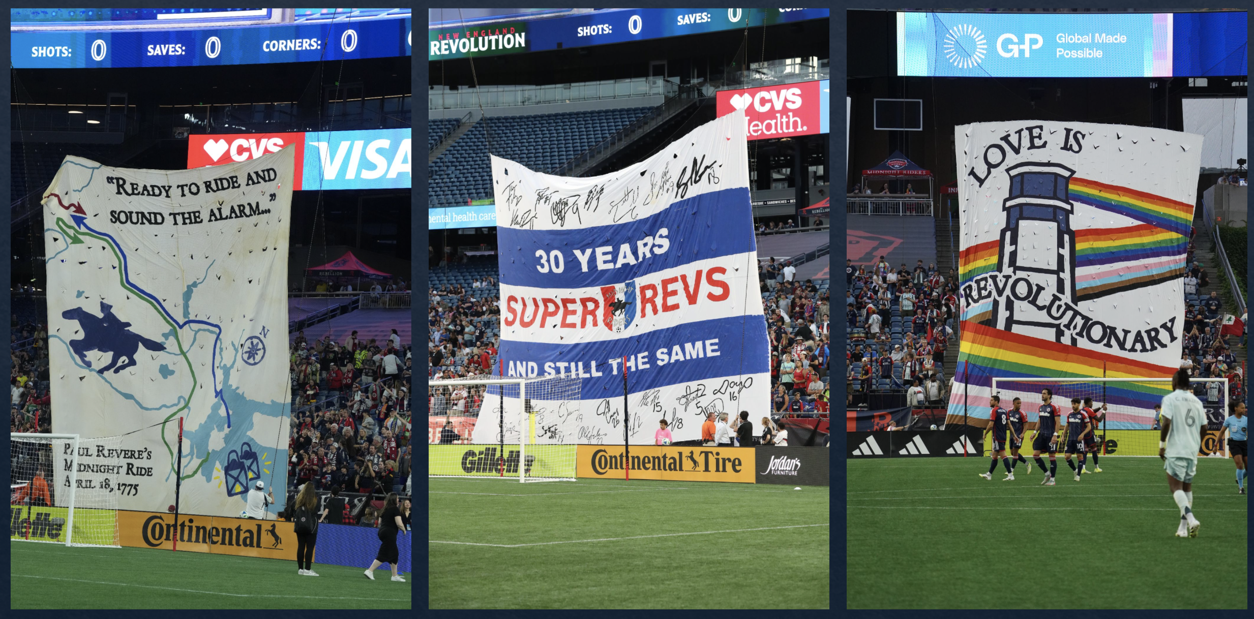 As part of the announcement, Demetri was presented with a banner featuring the original Riders logo that was signed by many Revs alumni.