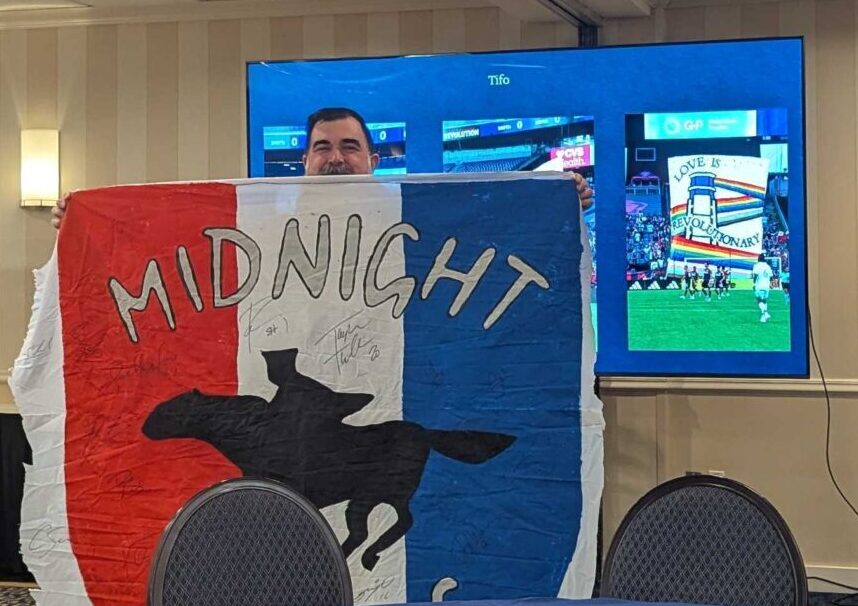 At the 2026 Annual General Meeting (AGM), Midnight Riders President Jeremy Goldenberg shared with attendees that former Treasurer, Secretary, At-Large Board member, and longtime Rider Demetrios “Demetri” Vidalis was selected as winner of the 2025 Samuel Prescott Award, a treasured Riders tradition, for his particularly extensive and dedicated efforts last season with the tifos created that were then displayed at several home matches.