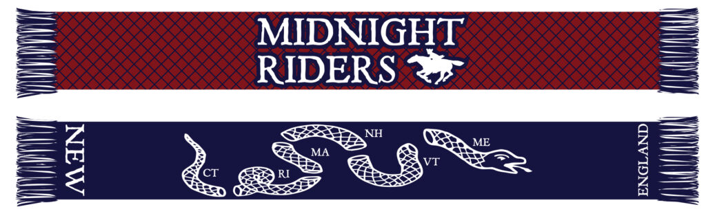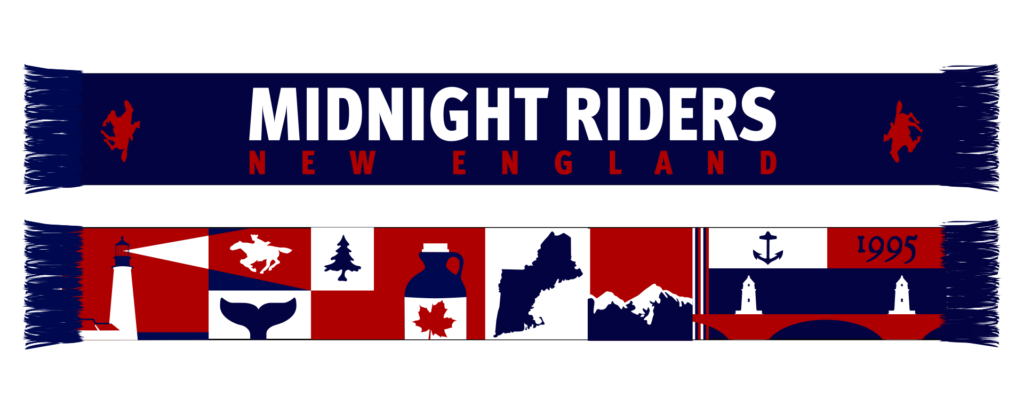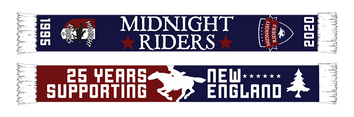 Below is a gallery of past Midnight Riders scarves. Each year we host a design competition for the new scarf so that all scarves are designed by, and chosen by our members.